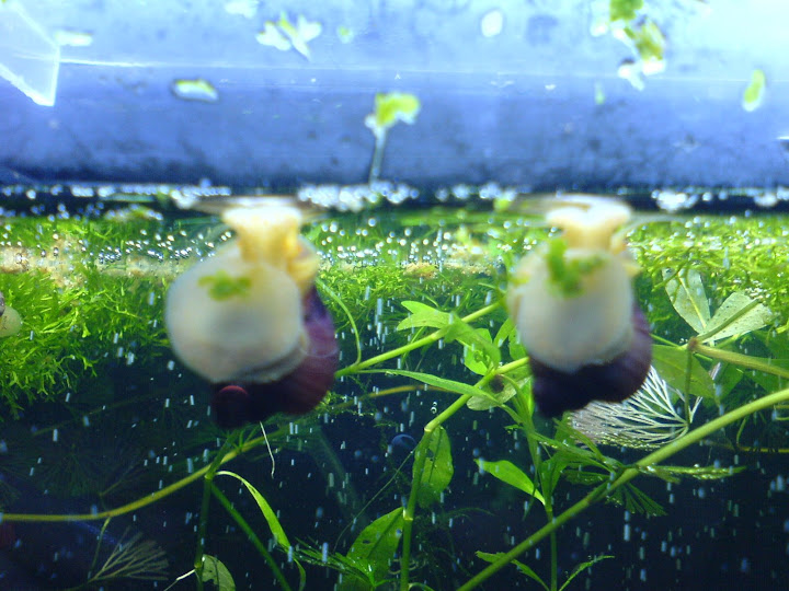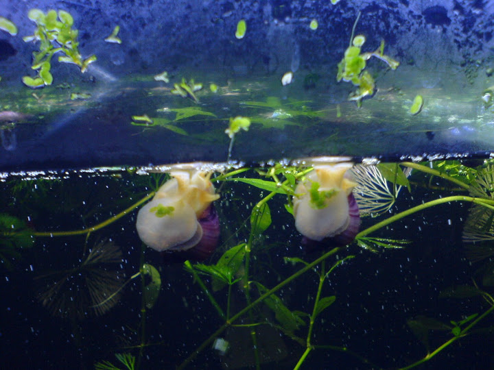 where oh where did my post go? in brief - my 8-12 apple snails are growing up to be beautiful purple ping-pongs, although in some tanks they have not passed the wasabi pea stage. i hope everyone is having as great results as i am!
